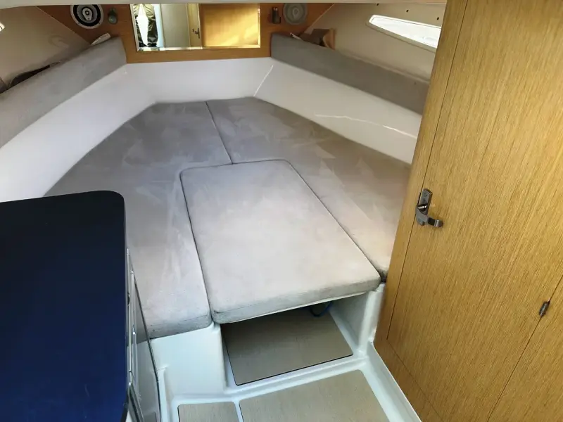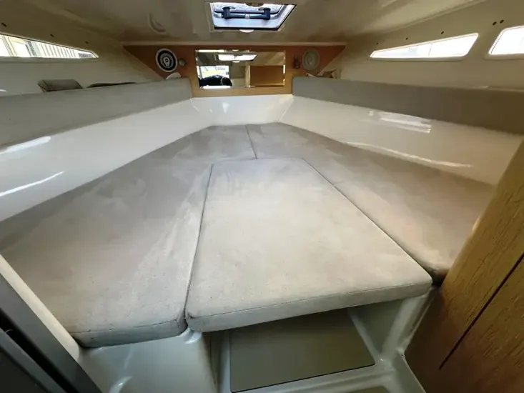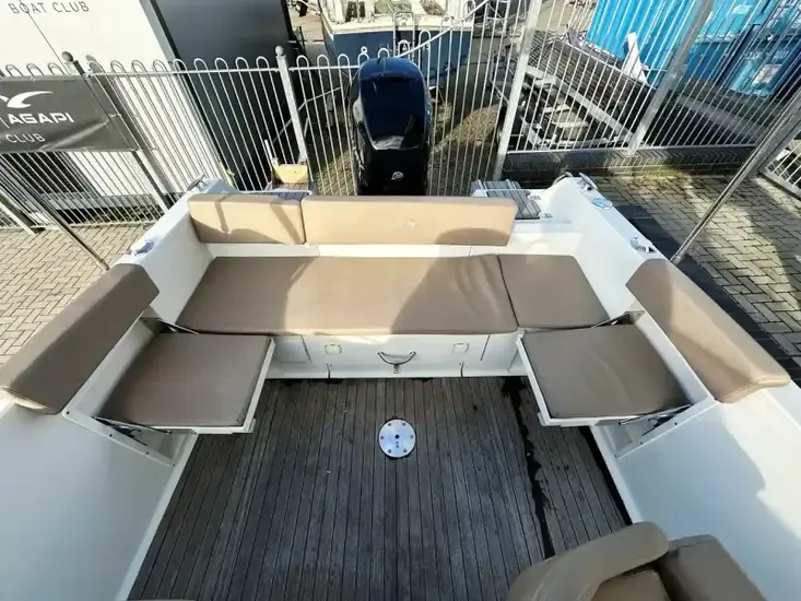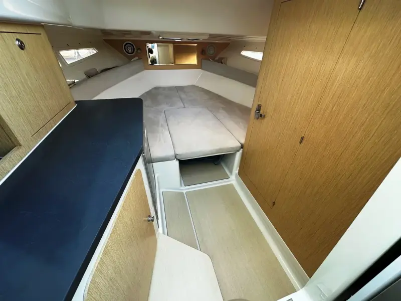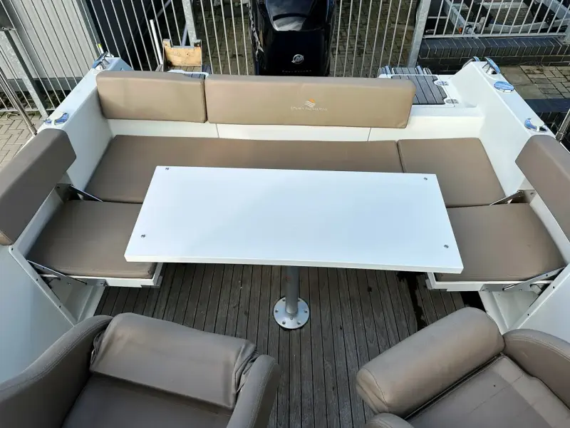 On board the 730 Sun Cruiser you’ll find two large sun decks – at the bow and stern – offering relaxing space for up to 8 people. The boat also offers a choice between a pilot bench including a gas stove and sink or comfortable seats, allowing you to adapt the space to your individual needs. The elegant finish is emphasized by a teak floor, adding style and sophistication.