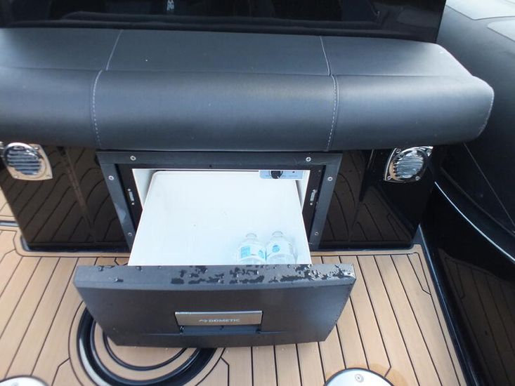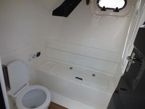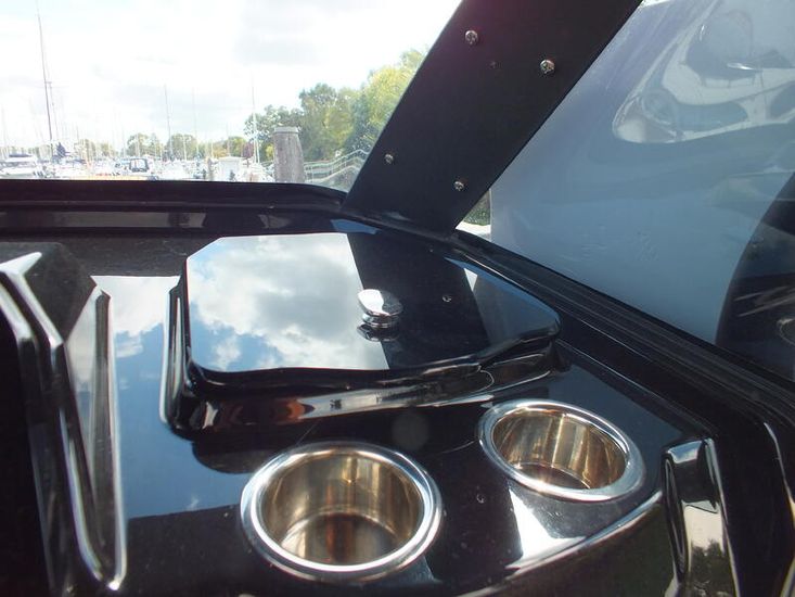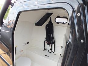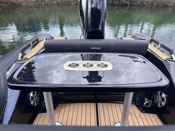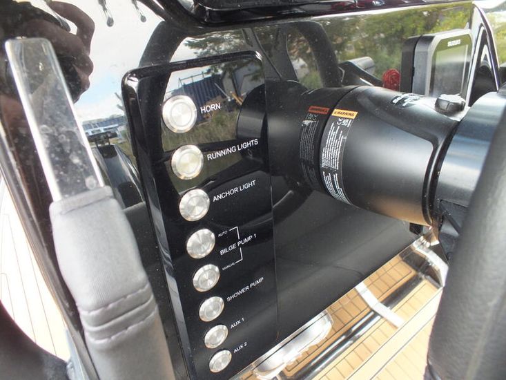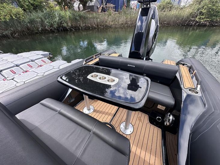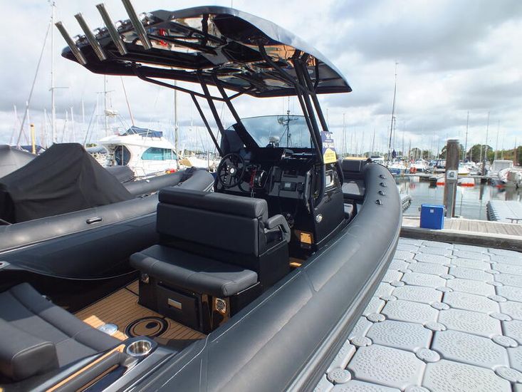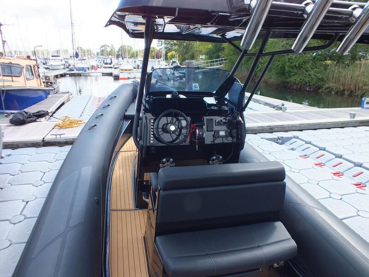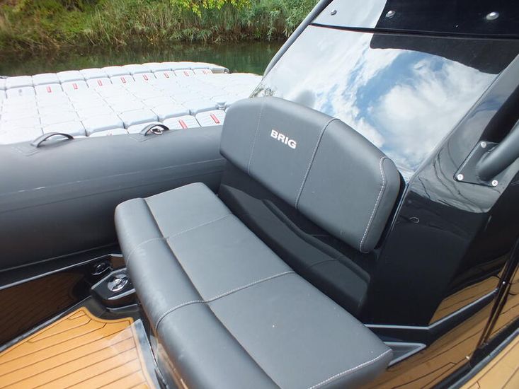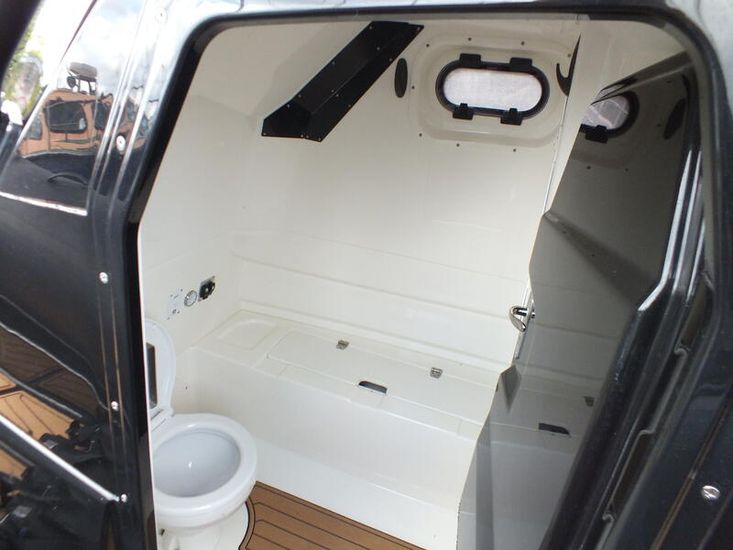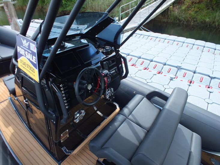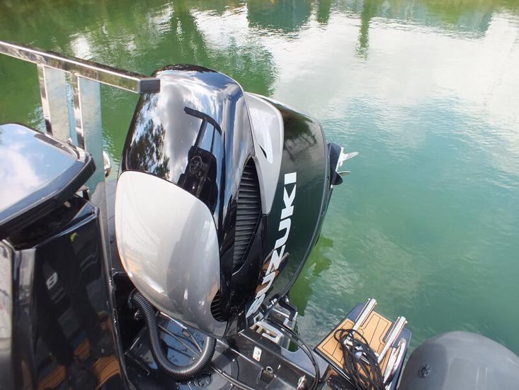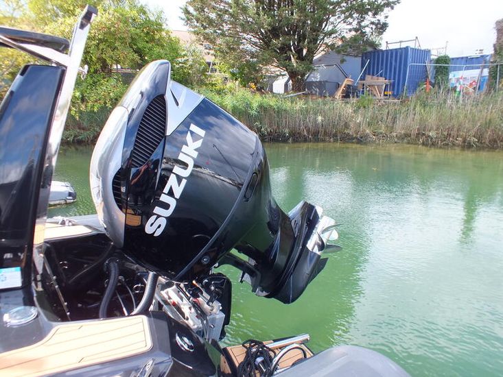 350hp Suzuki twin prop outboard (25 hours+ in use) | Full service history (last serviced 2025) | Transom jack plate | Aft mast | Fresh water shower | Boarding ladder | Vendeck flooring | Cockpit table with twin legs | 12v Dometic fridge | Black hull and black deck | Fusion music system | Garmin VHF radio | Scanstrut phone holder and wireless air charger | Twin Garmin 9" touchscreen plotters | Electric winch | Electric toilet with macerator & pump-out holding tank | T-Top | Rod holders | LED lights throughout | 6 x BRIG Crewsaver lifejackets | Ropes and fenders | Console cover | Stainless steel anchor | LED navigation lights | Twin batteries (new 2024)