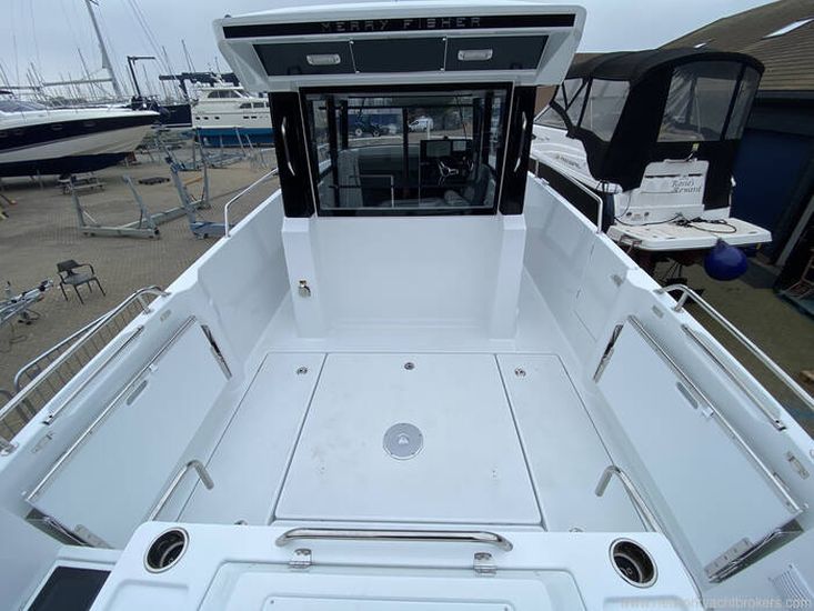 The Merry Fisher 795 Sport is designed to facilitate sporty outings at sea. The vast, modular cockpit enables you to clear the space entirely, with numerous storage lockers and at-tachment systems for fishing or other marine activities requiring the handling of equipment. Even the cockpit roof is designed without supports, in order to facilitate movement on board and avoid obstructions while casting. In just minutes, the cockpit changes into a saloon with removable bench seating and tables. This boat also features a U-shaped saloon in the forward cockpit, with two atmospheres that can be perceived from one side or other of the wheelhouse.